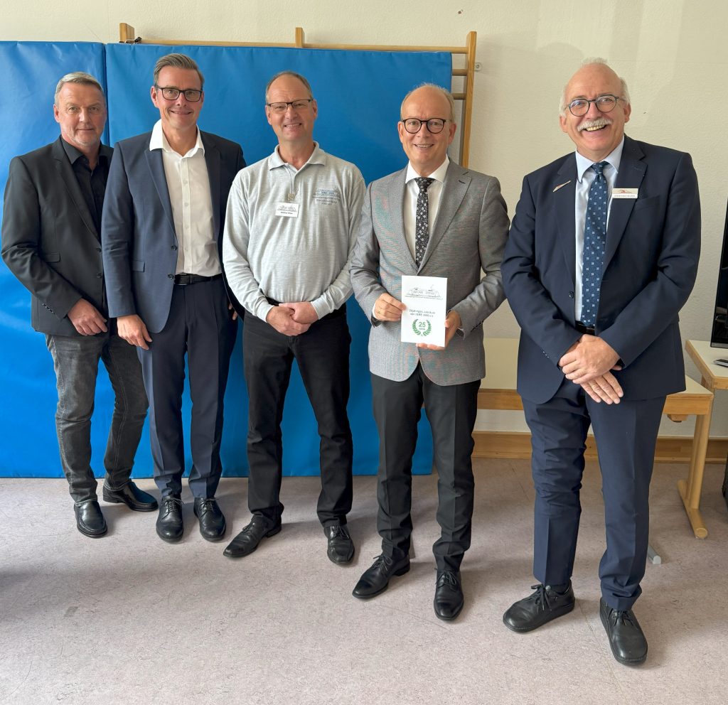 Bild 5 v. links Wolfgang Hillemeier, Vorstand der Volksbank Delbrück Rietberg e.G., Andreas Sunder, Mathias Wilke, Andre Kuper und Jürgen Wiethäuper