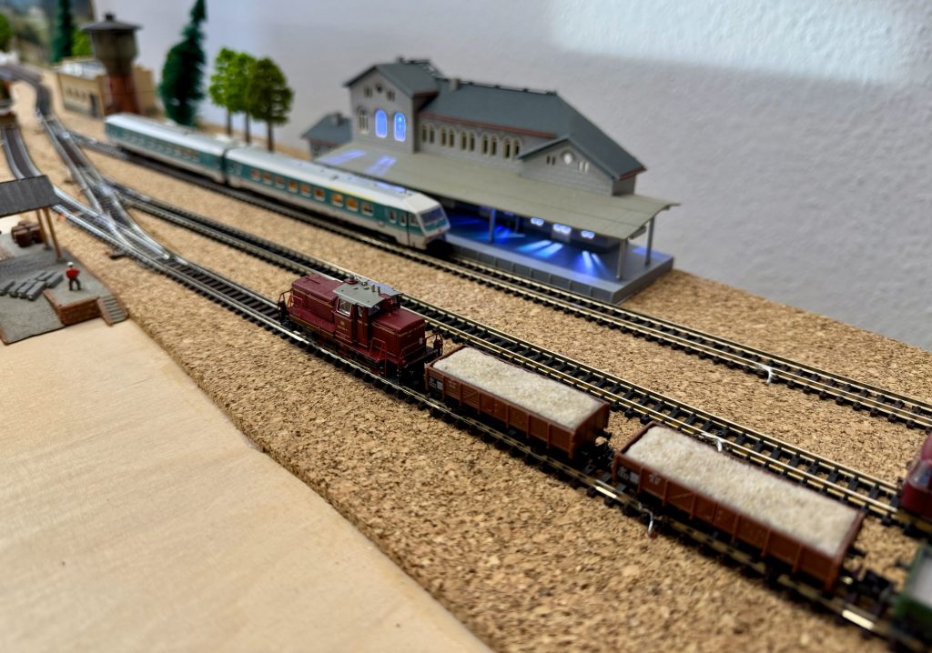 Die N Bahn der IGME 2000 – sie hat zwar die kleinste Spurbreite der Vereinsanlagen, aber auf dem Fahrtagen zeigen immer mehr interessierte Modellbahner großes Interesse. Verbindet die Spur N doch mit Ihrer Spurgröße den Kompromiss zwischen der Modellgröße, dem benötigten Platz und einer interessanten Anlagengestaltung.
